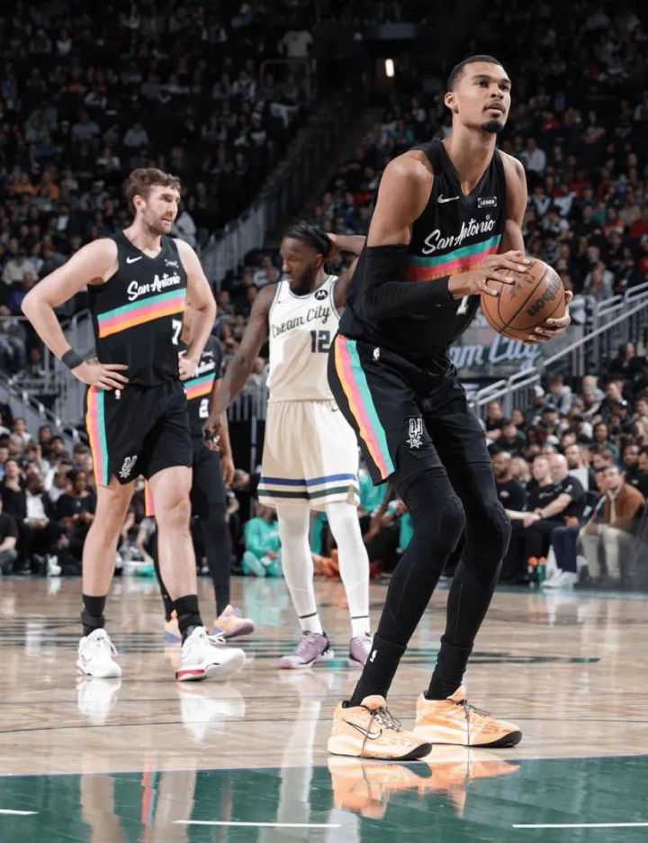 本场比赛中,马刺队的少壮维克托 - 文班亚马无疑是最留心的明星之一。他全场出战30分钟,在有限的时刻里充分展现了我方的实力和后劲。在蹙迫方面,他一共伊始21次,掷中7球。天然投篮掷中率并不是荒谬高,但辩论到他濒临的是雄鹿队毅力的把稳,这么的发达依然相当出色。在三分线外,他尝试了3次远投,缺憾未能掷中,但这并不影响他在其他方面的剖析。罚球线上,他发达得十分隆重,10罚9中,稳稳地将分数收入囊中,最终得到了23分的高分。