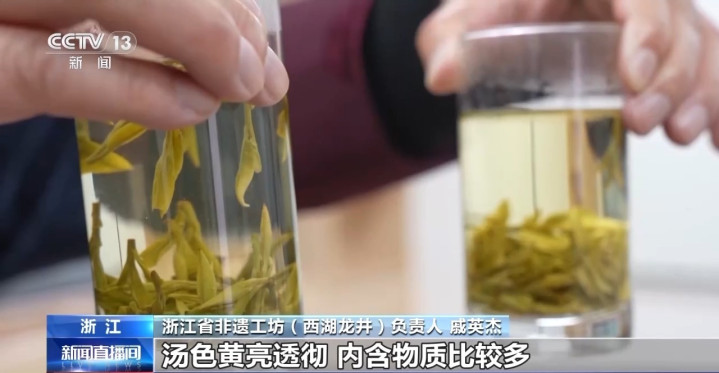 浙江省非遗工坊(西湖龙井)负责东说念主戚好汉先容,本年西湖龙井狮峰山的头采茶,芽叶舒展痴肥,汤色黄亮彻底,内含物资比较多。前年的茶天然亦然好茶,但两个比较较如故存在差距,茶汤比较昏黑,香气也稍差一些。
