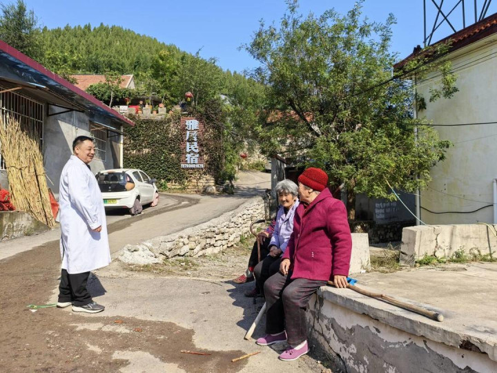 在忙完门诊的事情后,孙三军还会到肉体未便的村民家中依期看诊。因为位于山区,村里许多路不成通车,走在村中碰到的村民都会体恤的跟孙三军呼唤。