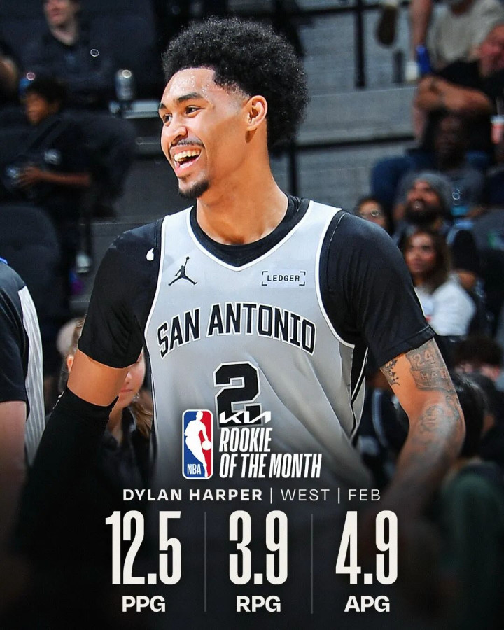 相背的,哈珀疏淡优秀,此前二月份,他刚刚拿到月最好少壮,那时他场均交出12.5分3.9篮板4.9助攻,投篮射中率55.4%,这亦然本赛季于今惟逐个个非克尼普尔和弗拉格的月最好少壮获取者。