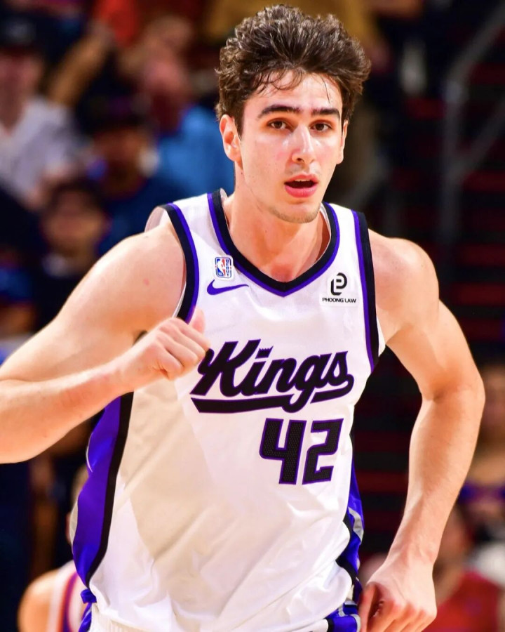 2025年选秀大会,国王用42号签选中了这位来自法国的大个子,他身高2米17,体重113公斤,现时22岁。
