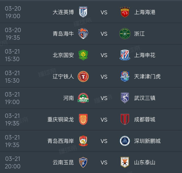 凭据赛程安排,中超第3轮的8场比赛,将会在周五周六两天进行。