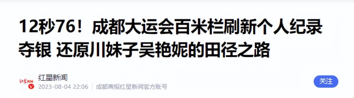 红星新闻|12秒76!成王人大运会百米栏刷新个东说念主记录夺银 归附川妹子吴艳妮的田径之路