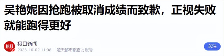 极目新闻|吴艳妮因抢跑被取消收货而致歉,正视失败就能跑得更好