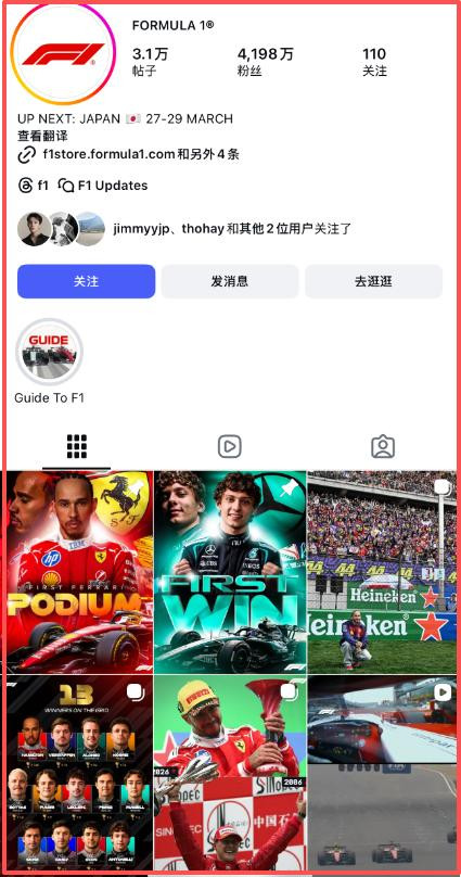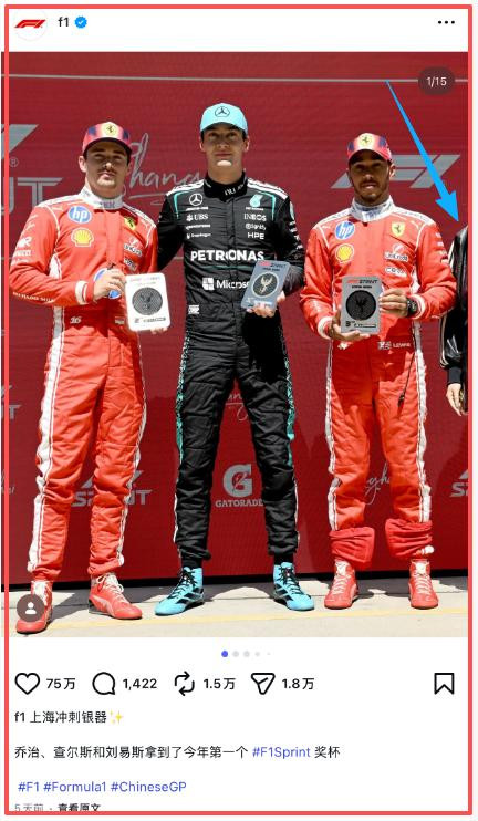 可面向全球的F1官方Instagram主账号,在发布并吞张原始像移时。