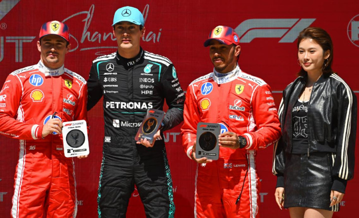 2026年3月14日,上海F1中国大奖赛冲刺赛的领奖台上。