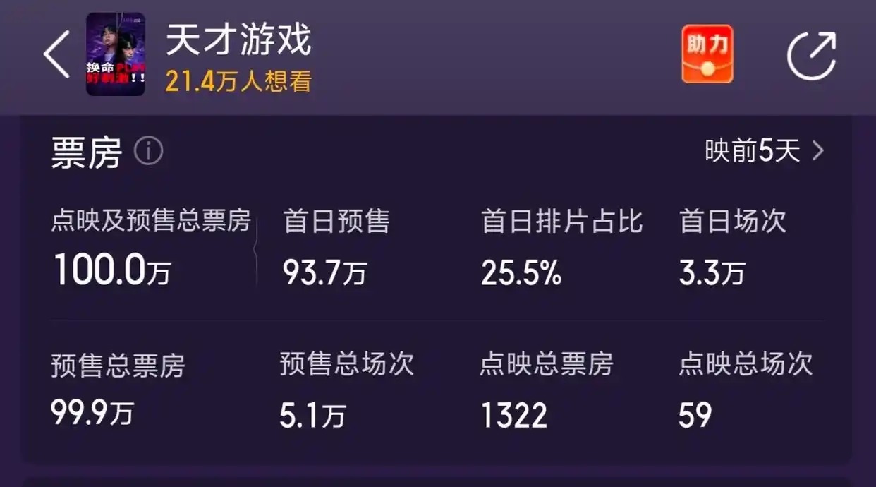 当今,《天才游戏》预售票房仍是胜利粗放100万,在清朗档上映的新片里是最具后劲的存在。
