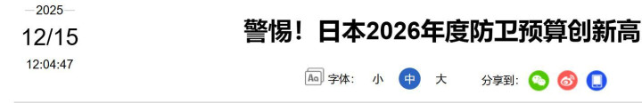 《警惕!日本2026年度防患预算改革高》2025/12/15 起原:环球时报