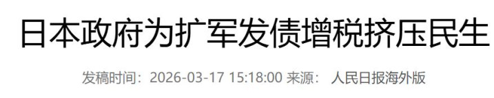 《日本政府为扩军发债增税挤压民生》 2026-03-17 起原: 东谈主民日报国外版博亚体育app