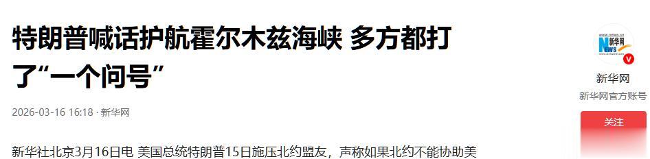 2026年3月15日,第六轮高档别经贸盘问刚插足尖锐化,他不等谈出收尾,平直在场外喊话点名中国,口吻强劲到结巴断绝:霍尔木兹海峡护航,必须上!经贸不对还没定论,他为啥急着甩这种硬条目?背后藏着什么猫腻?