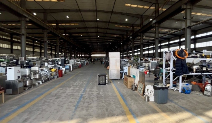 诨名“狗哥”的二手餐饮建树回收商安大为带着记者参不雅其位于河北廊坊的“狗哥二手餐饮建树大卖场”。扫数卖时势积约2万遍及米,其中库房约1.5万遍及米。