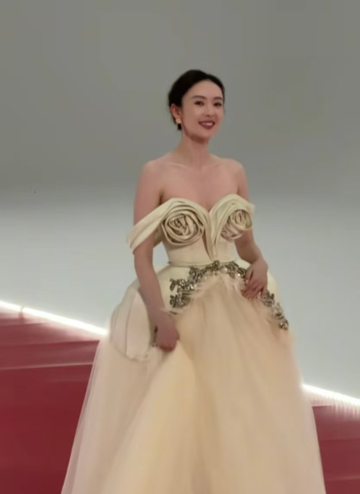这时候的童瑶可比上一次要消弱好多,穿了一个带着立体玫瑰袒护的慑服,