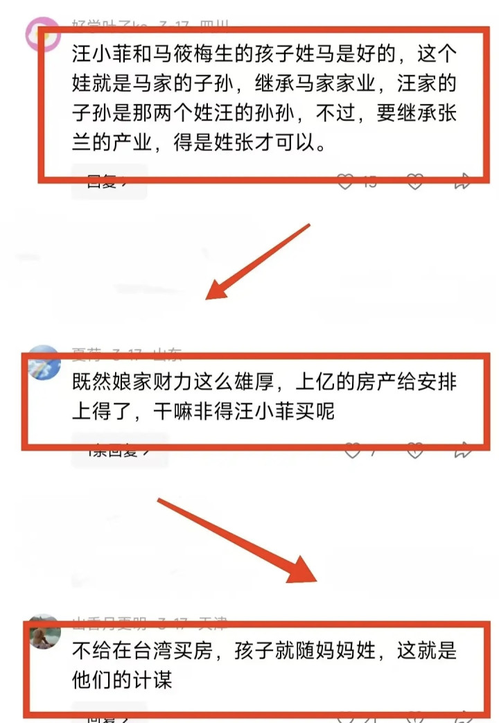 其实孩子姓汪如故姓马,现实上是汪小菲和马筱梅两个东说念主的事,轮不到张兰过多投入,可马筱梅专爱在这个时候公开建议来,说白了即是借着孩子的姓氏,给张兰递话,潜台词好像即是,你不首肯买房,我就有可能让孩子随母姓,这下马威给得如实够显著。
