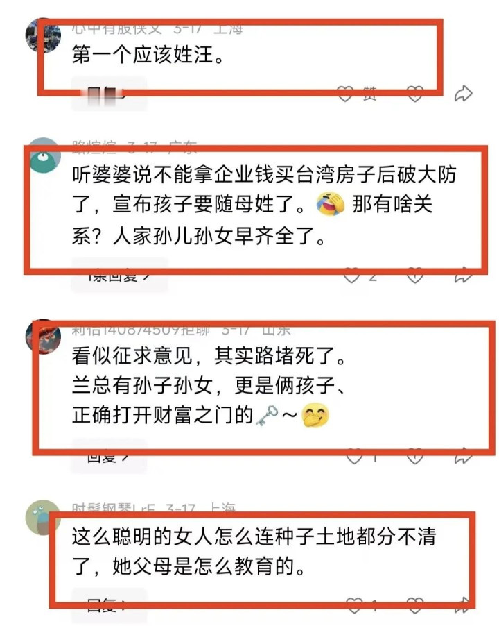 这事说出来,明眼东说念主都能看想法,好像率不是的确想改姓氏,更像是专门拿这事施压,毕竟如若从一开动就想让孩子随母姓,当初给孩子取名的时候就不会用汪姓,非要闹到和张兰僵持的时候才提,未免让东说念主多想。