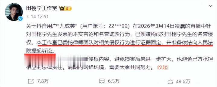再次声明!田栩宁更新告九成好意思领略——新浪财经