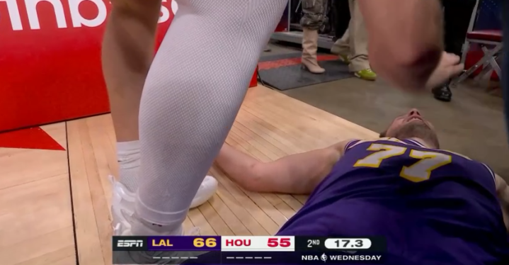 第二节湖东谈主一直保捏跨越况兼单节32-29又赢3分,半场打完湖东谈主67-55跨越火箭12分;次节东契奇5投2中拿到5分3篮板3助攻,两次快攻反击上篮,时间快攻2+1摔出底线,躺在地板上休息,膝盖磕破了,白色护膝照旧见红了。