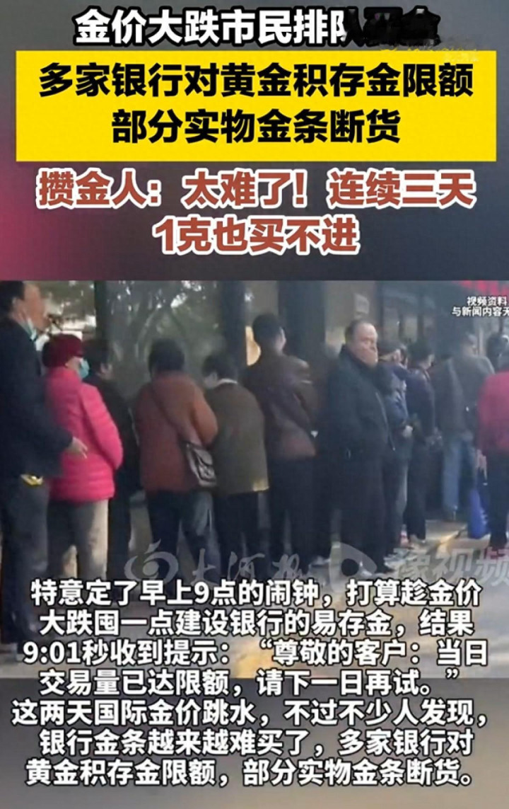 除了线下门店的火爆,银行金条也相似收到破费者的温和。据媒体报谈,跟着海外金价的波动,不少东谈主发现,银行金条越来越难买了。有东谈主有利定了早上9点的闹钟,HQSports想象囤少量修复银行的易存金,效果9:01秒收到领导:“尊敬的客户:当日来回量已达名额,请下一日再试。”有网友盘考了建行责任主谈主员,回话是:一天的额度已用完,博亚体育app中国官方入口提议第二天再试一试。除此除外,工商银行如意金条来回知道区域断货。
