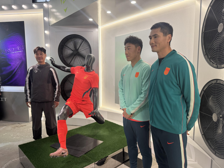 虎扑03月19日讯耐克当天发布2026国足主场球衣,国足主帅邵佳一、队员朱辰杰、前主帅李霄鹏出席发布看成。