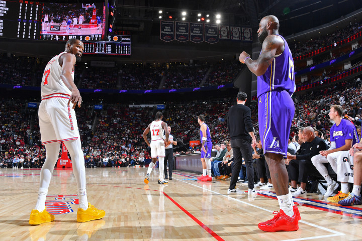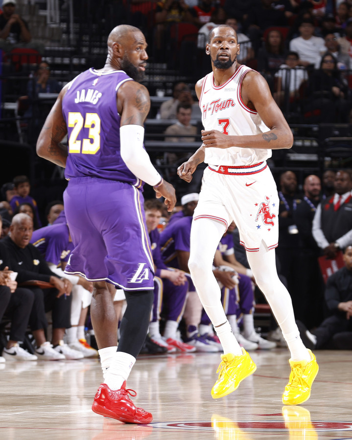 湖东谈主和火箭迎来本赛季第三次交手,湖东谈主不息在留神端轻易夹攻杜兰特,第一节35-26普及9分,詹姆斯开场迎着杜兰特轰进三分,之后外线再中三分,留神端抢断杜兰特何况反击暴扣燃烧替补席,首节3投3中拿到8分;杜兰特则是单节2投1中只是拿到2分3篮板。