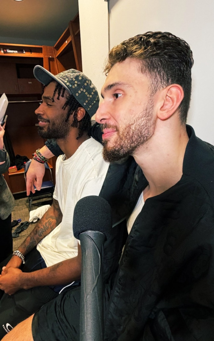 火箭好意思女记者VanessaRichardson晒出申京和伊森赛后领受采访时搂着肩膀的合照,配文写谈:“氛围,化学反馈,肢体讲话。”