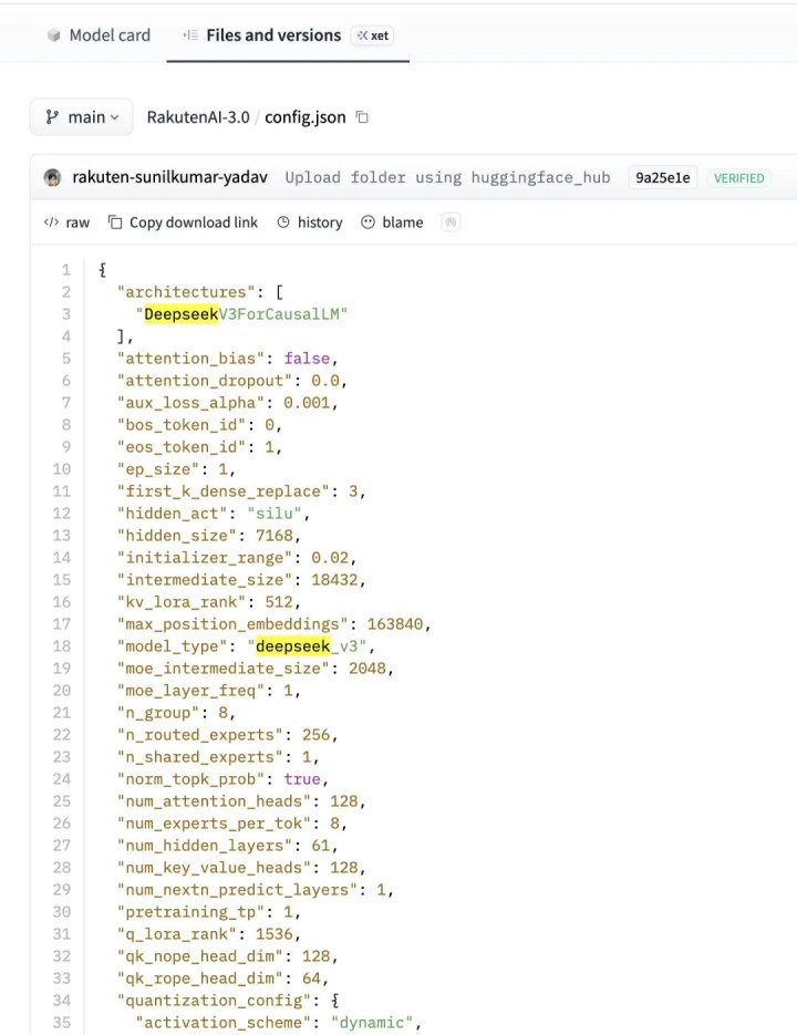 不外,模子上线后不久,技能社区很快发现 Rakuten AI 3.0 的底层建设与 DeepSeek - V3 高度一致。